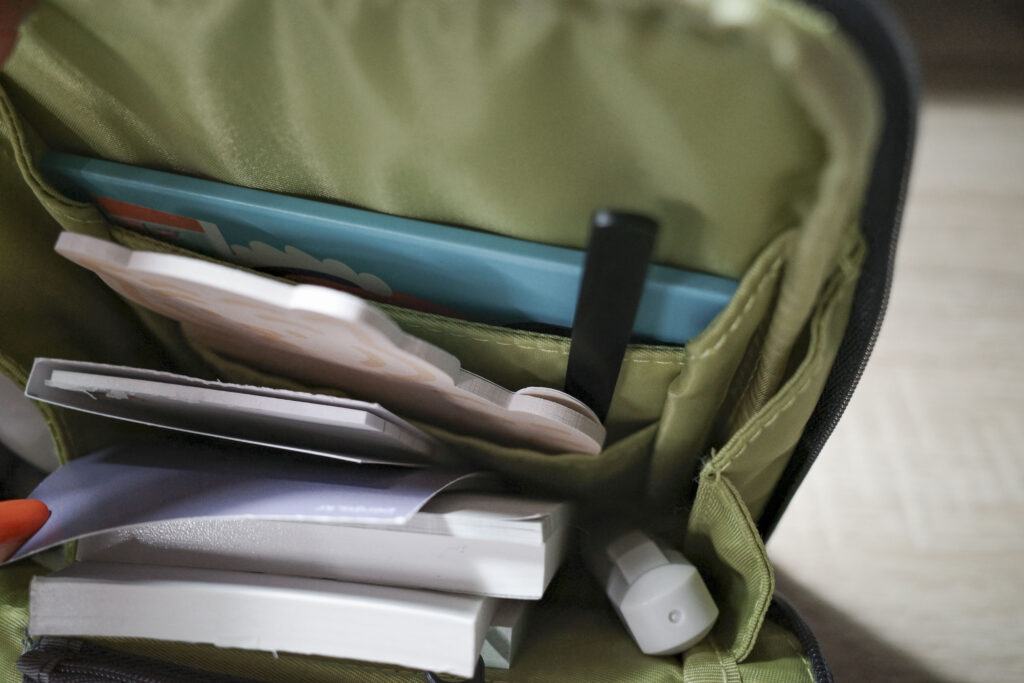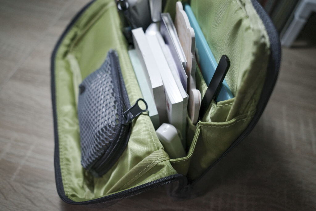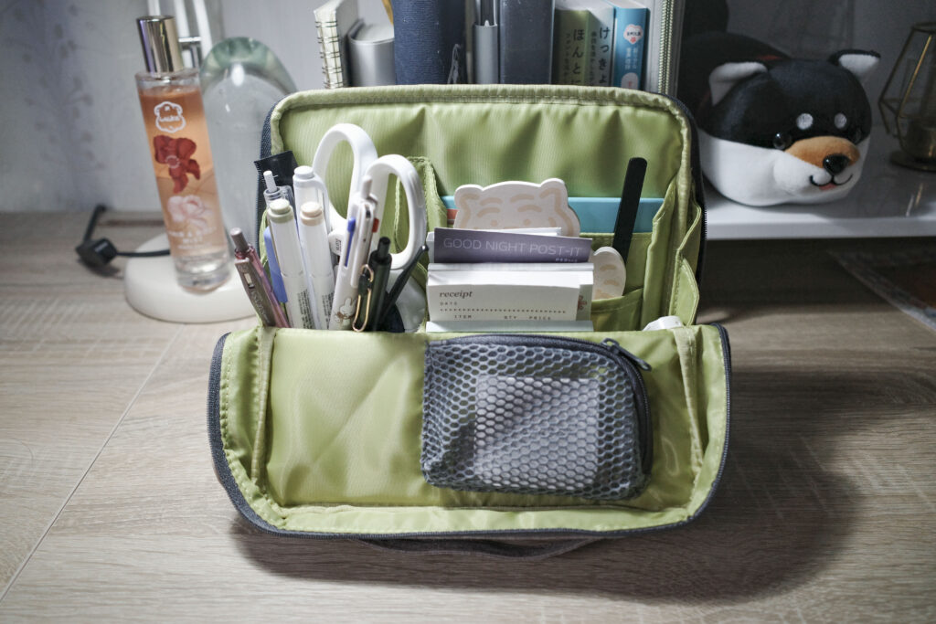 ペンやカッター、ハサミはもちろん、メモ帳やテープのり、修正テープも入ります!
