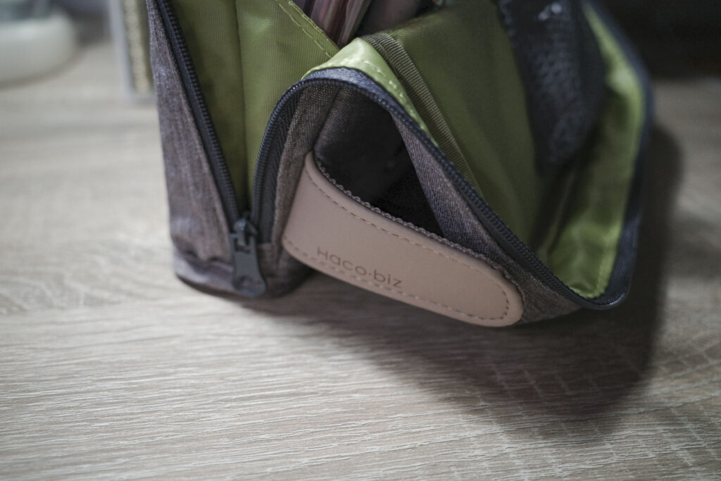 中の生地はオリーブで、落ち着いた色味が好みです。