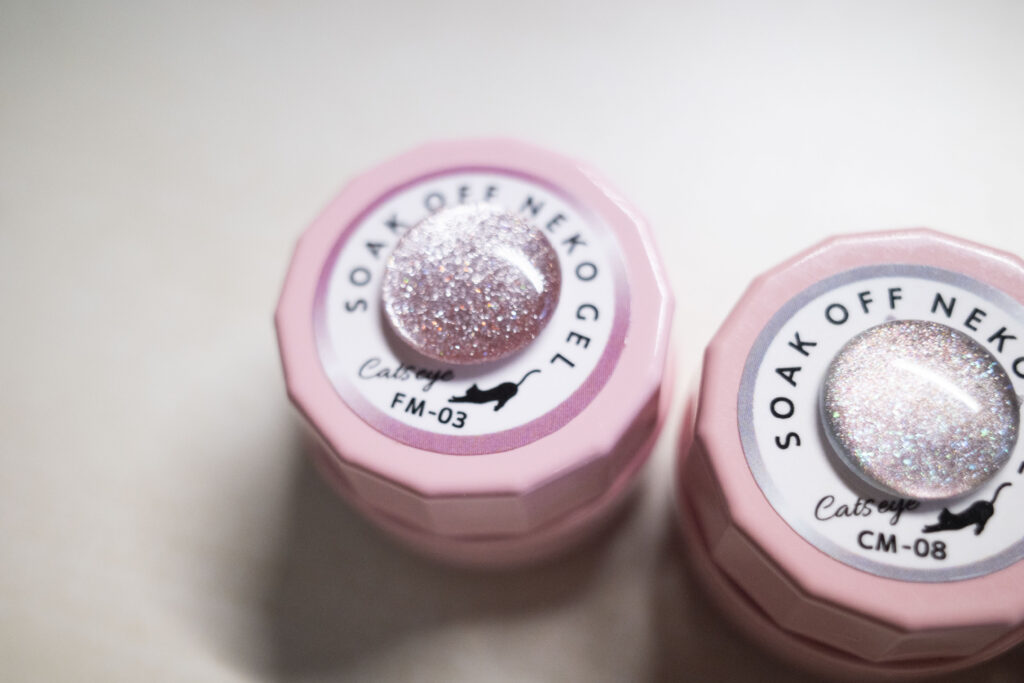 FM-03はマグネットジェルの中にフラッシュがグリッターが入っていて、ライトが当たるとキラキラ輝きます。
